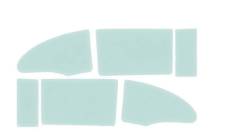 6 piece of side glass with 2 vent windows, 2 door glasses, 2 quarter window glasses. All with correct coloring.