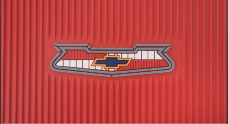 All brand new way to protect your carpet and give you classic Tri-five a cool and unique look with these all new rubber floor mats. Works on all 1955-57 Bel-Air, 210, and 150 cars. Each mat has a colorful Chevrolet crest logo with blue Bow Atie in the correct style to match your Tri Five emblems. Manufactured from high0grade automotive plastisol for long lasting durability. Comes a 4 piece set with 2 for the front and 2 for the back.