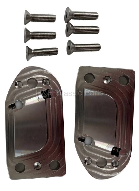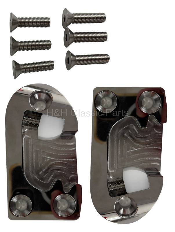 New reproduction door striker plates. Made from high quality stainless steel, then polished, comes with custom stainless hardare. Comes as a pair.